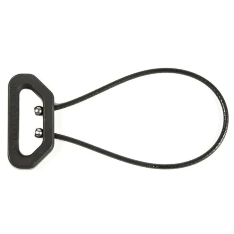 The sling loop body is CNC machined from 6061-T6 aluminum billet before being tumbled and bead-blasted for a non-reflective surface. The loop is hard-coat anodized before the nylon coated stainless steel aircraft-grade cable is installed with ball-shank ends. The result is a sling adapter with limitless uses. Cable outer coating may deform if subjected to extreme barrel heat but the stainless core will not melt.