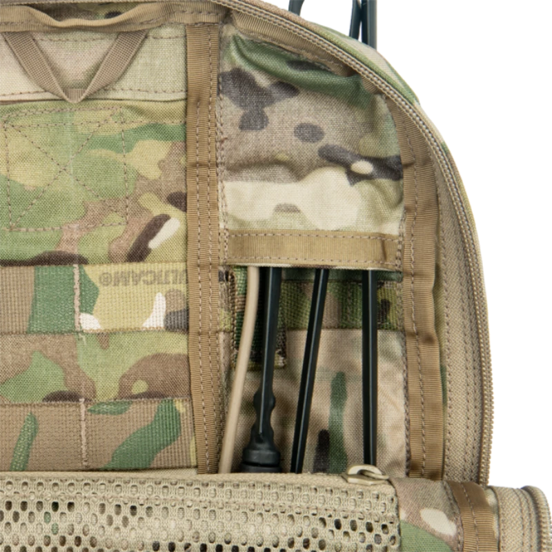 Built from rugged 500D outer fabric with internal plate retention straps, hydration compatibility, and interior comm routing ports, this pack isn’t just tactical, it’s tactical intelligence made tangible.