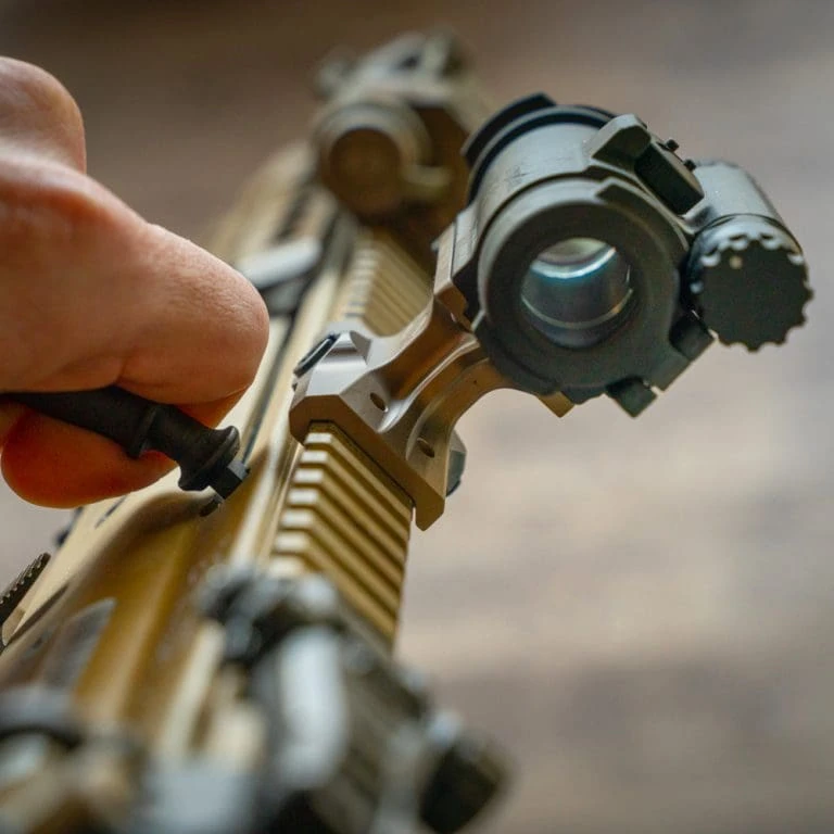 The DOT Mount™ by Reptilia is a lightweight, slim-line mounting solution for a variety of red dot optics. Machined from billet 7075-T6 aluminum with Milspec Type III hard anodized finish, the DOT Mount attaches to any M1913 Picatinny rail, and offers lower 1/3 co-witness with standard AR15-style back-up sights. Its spring-loaded nitrided steel clamp and mounting bolt simplify the installation process, and sit flush with the body of the mount for a low-profile, anti-snag design.