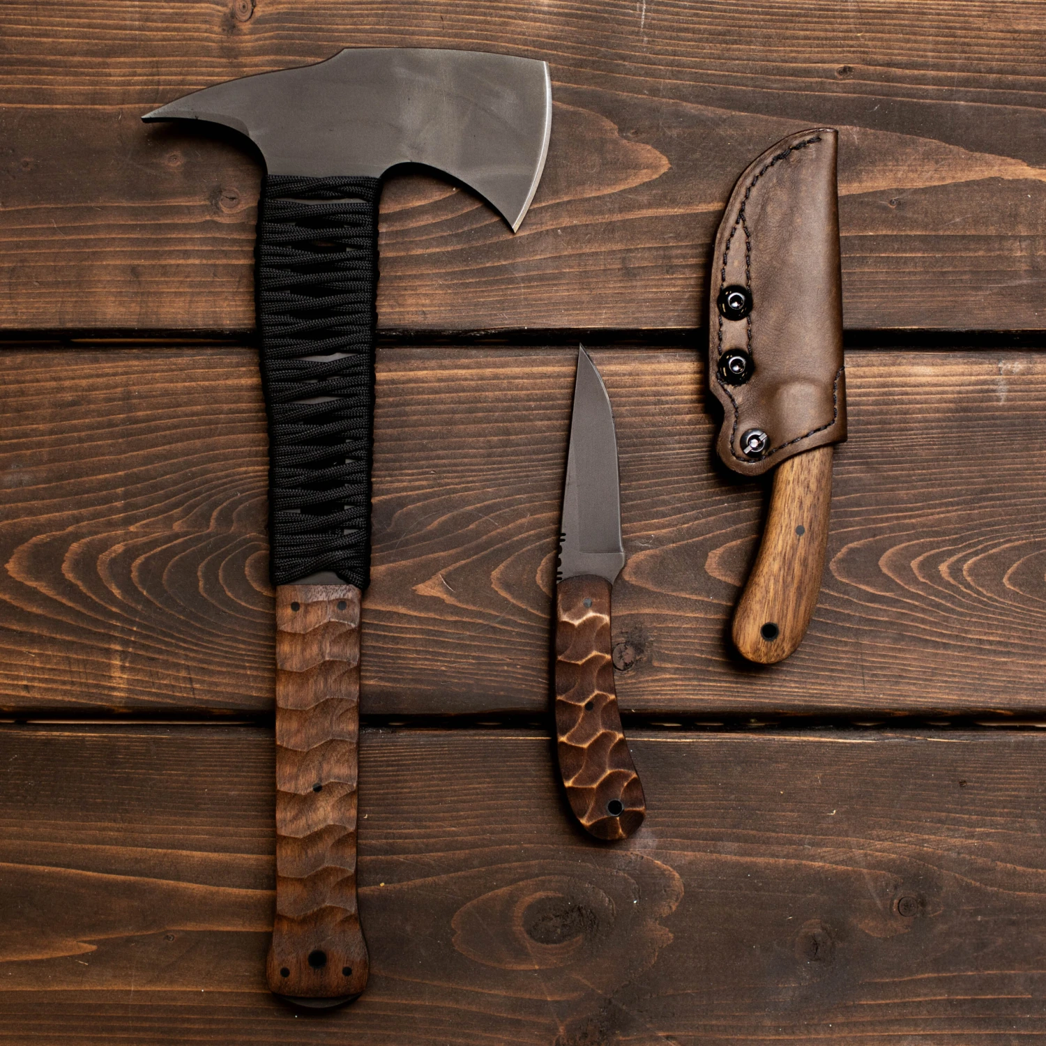 The Walnut Cord WK Combat Axe is compact, devastating, and precision-balanced. Built from high-performance 80CrV2 steel with a skeletonized tang, it combines durability with agility. Every detail, from the sculpted walnut handle to the spiked breaching head, reflects American craftsmanship and combat-ready intent. This is the axe for operators, collectors, and anyone who demands performance in the field.